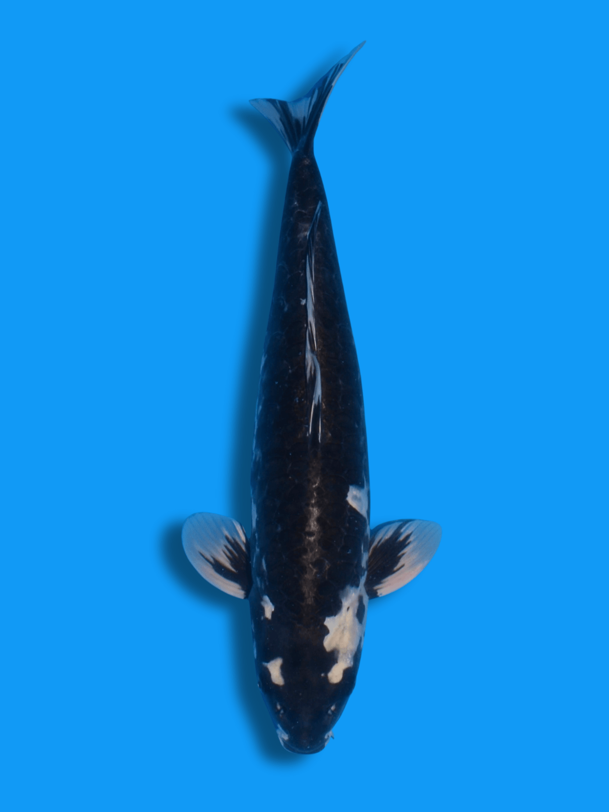 Dieses Big Scale Gin Kumonryu-Weibchen beeindruckt mit sehr schönen und großen Schuppen. Ein wunderbarer Sansai metallic Kumonryu und ein sehr seltener Koi mit eindrucksvoller Erscheinung!
