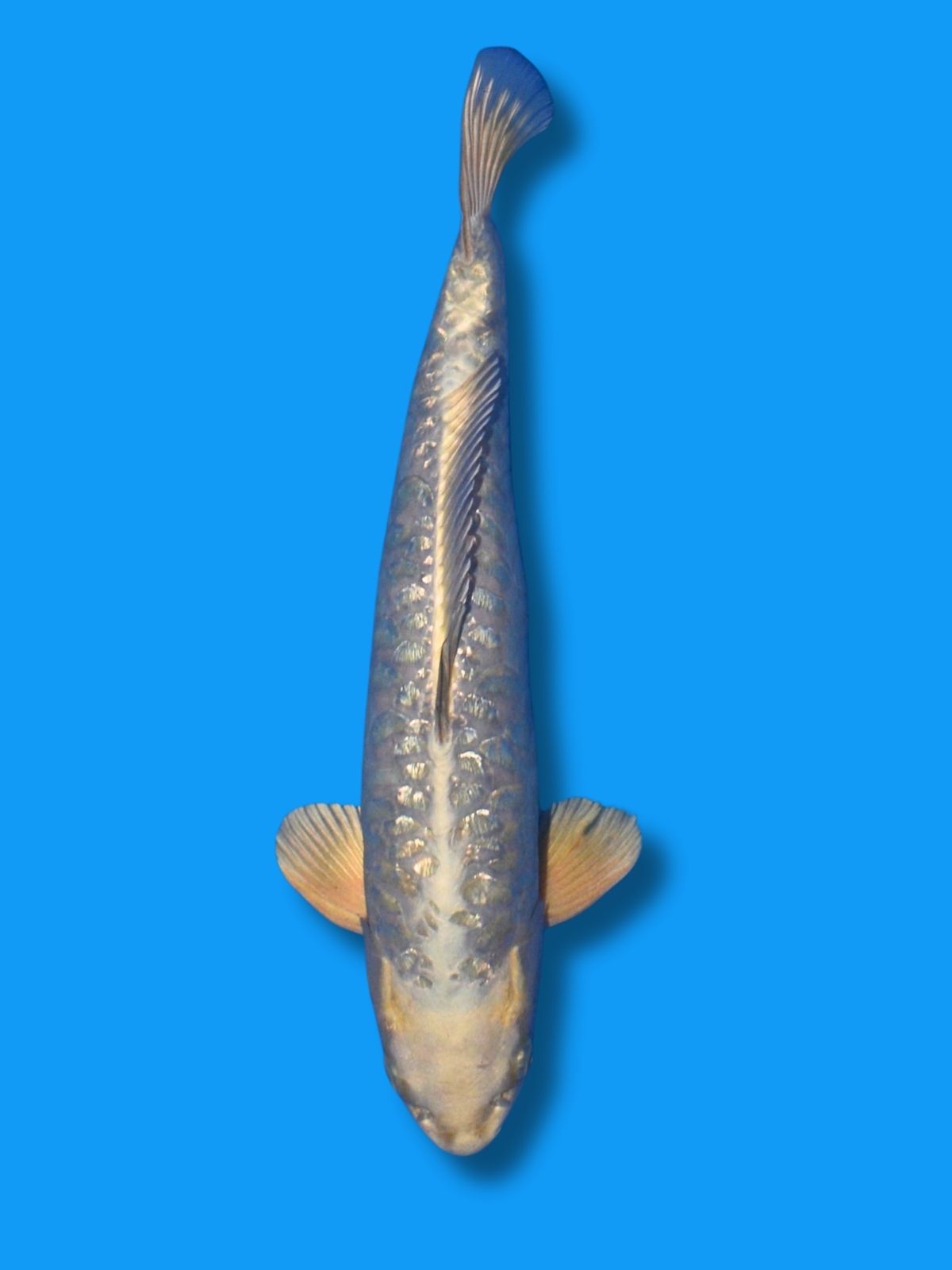 Dieser Big Scale Mukashi mit viel Potenzial zeichnet sich durch einen hellen, strahlenden Körper mit riesigen, glänzenden Perlmuttschuppen aus. Die Schuppen sind in ein wunderschönes Glanzweiß eingebettet und verleihen dem Koi eine besonders edle Erscheinung. Ein beeindruckender Koi, der sich noch hervorragend weiterentwickeln wird. Ein echtes Highlight in jedem Teich.