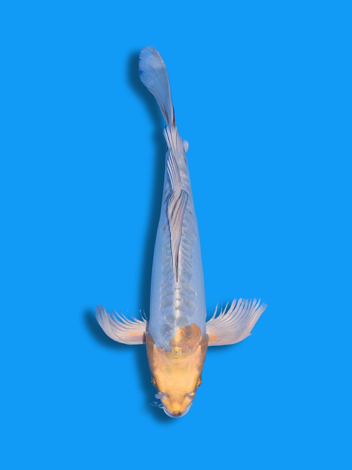 Butterfly Doitsu Kogane Ochiba – Ein super sauberer Koi mit großem Wachstumspotenzial. Dieser Koi wird später groß und hat das Potenzial, handzahm zu werden.