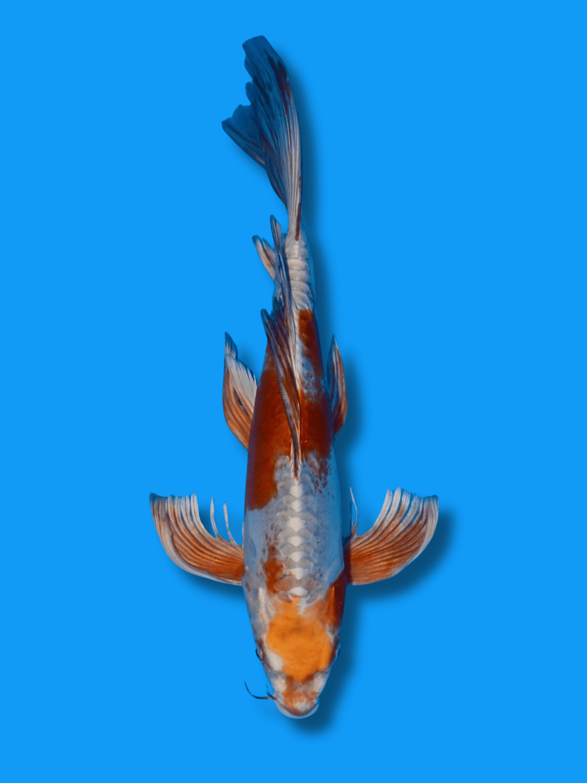Dieser sehr saubere Butterfly Doitsu Kogane Ochiba überzeugt mit einer tollen Zeichnung. Der Koi zeichnet sich durch großes Wachstumspotenzial aus und wird handzahm. Weitere Butterfly-Varietäten finden Sie auf unserer Website in der Kategorie Hirenaga / Long Fin / Butterfly.