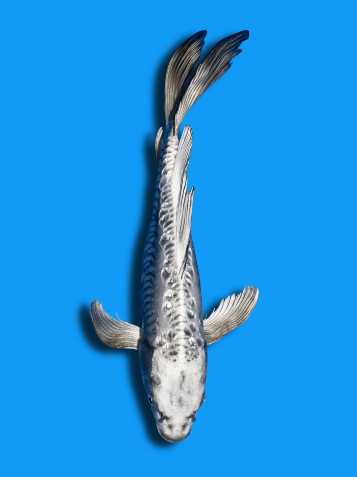 Butterfly Doitsu Nezu Ogon mit schönem silbergrauem Farbton und vollständig ausgeprägten Doitsu-Schuppenreihen. Klare, ruhige Erscheinung mit eleganter Ausstrahlung.