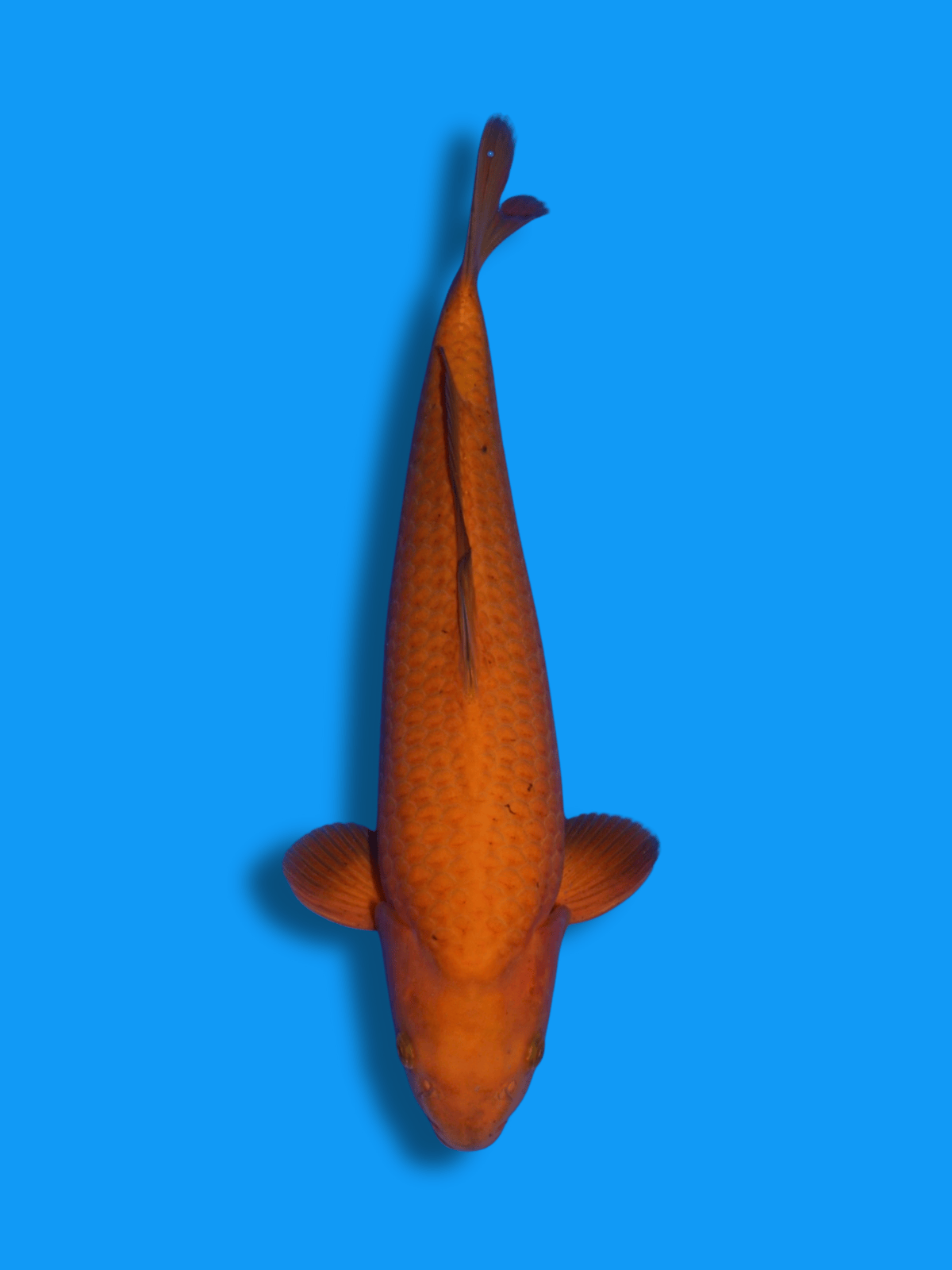 zeigt eine seltene, tief dunkelbraune Farbe und überzeugt mit einem sehr starken Körperbau. Seine ruhige Ausstrahlung und das gute Wachstumspotenzial machen ihn zu einem besonderen Koi für Liebhaber.