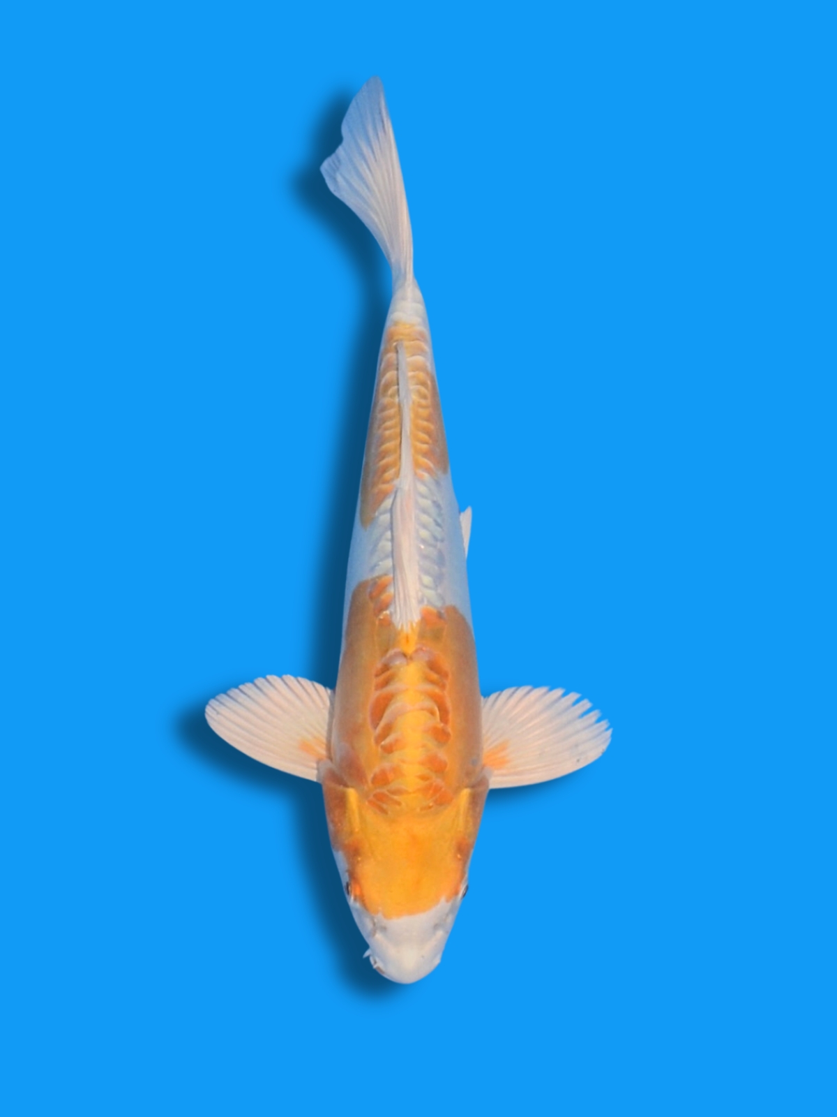 Doitsu Hariwake - Eine Varietät, die nicht einfach zu bekommen ist. Dieser Nisai beeindruckt mit seinem einzigartigen metallic Gelb-Goldauf einem strahlend metallic Schneeweiß. Die schöne Zeichnung und das harmonische Zusammenspiel der Farben machen diesen Koi zu einem echten Blickfang. Ein Koi mit fantastischem Zukunftspotenzial, der sich weiterentwickeln und sicherlich viele Jahre Freude bereiten wird!