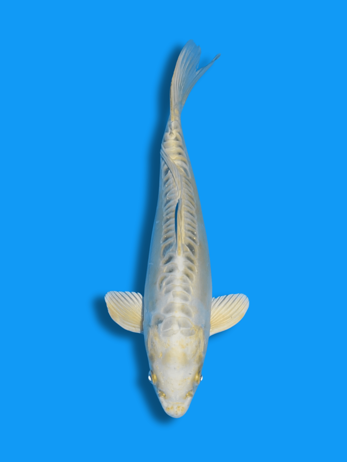 aus der Zucht von Aoki mit einer Größe von ca. 30–35 cm. Dieser Koi zeigt eine helle Farbgebung in Lemongelb und Weiß und wirkt freundlich im Teich. Es handelt sich um einen preiswerten Koi.