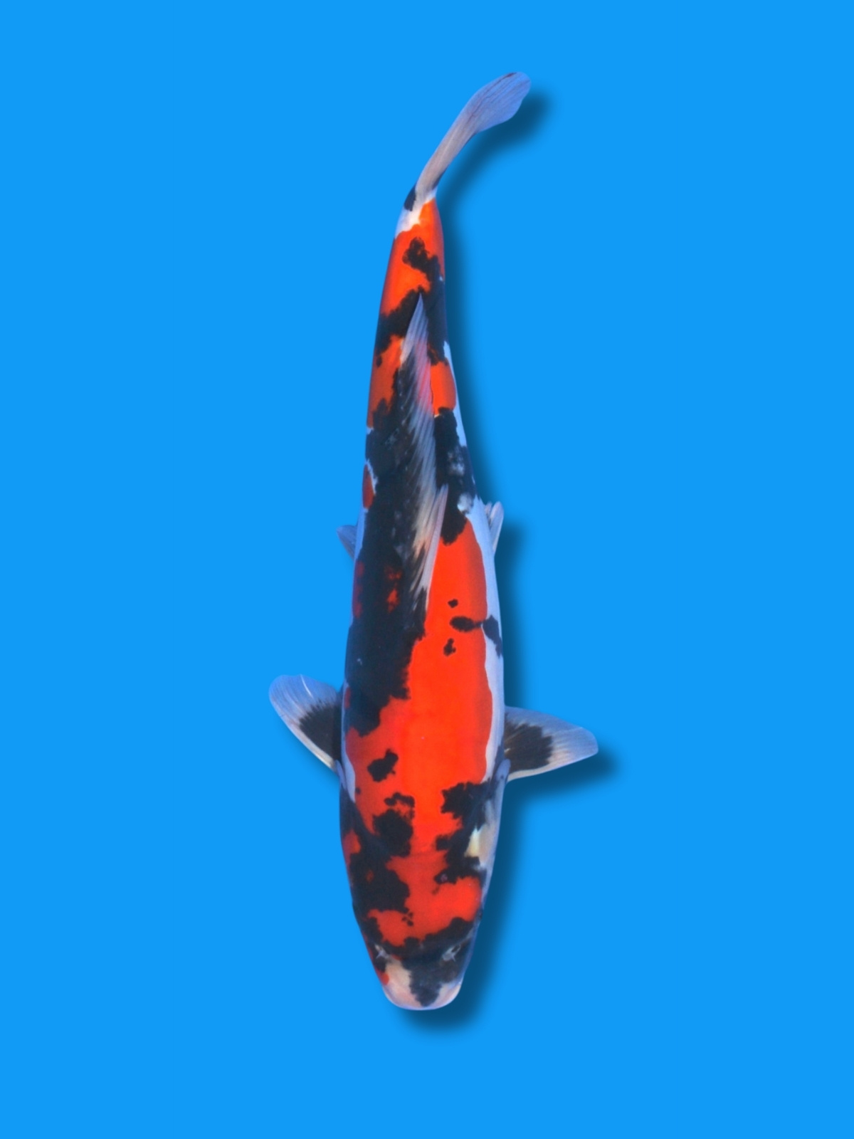 Dieser wunderschöne Nisai Doitsu Showa mit wenig Weißanteil stammt vom renommierten Züchter Conias (auch Hiroi genannt). Seine intensiven Farben machen ihn zu einer echten Bereicherung für jeden Teich und zu einem Highlight für Koi-Liebhaber.