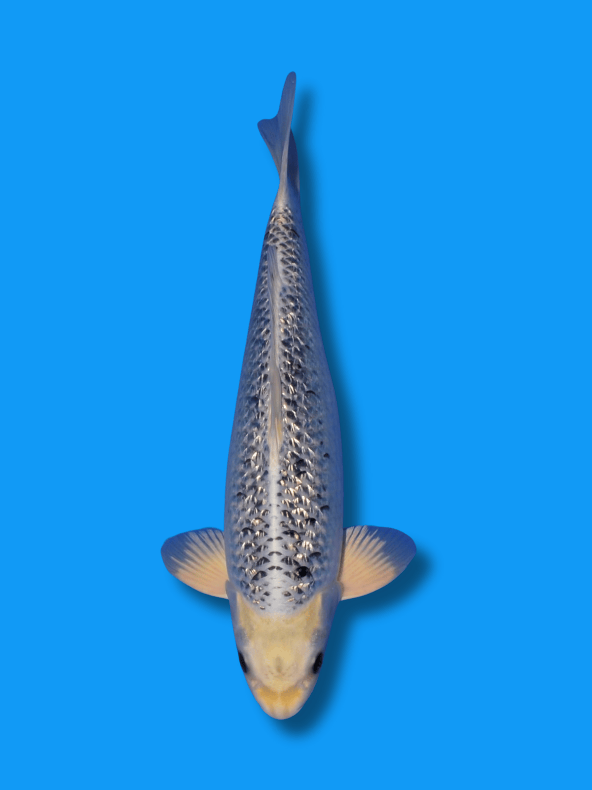 Dieser Ginrin Gin Matsukawabake von der renommierten Aoki Koifarm zeichnet sich durch einen beeindruckenden metallischen Glanz und glitzernde Ginrin Schuppen aus, die ihn zu einem echten Blickfang im Koiteich machen.