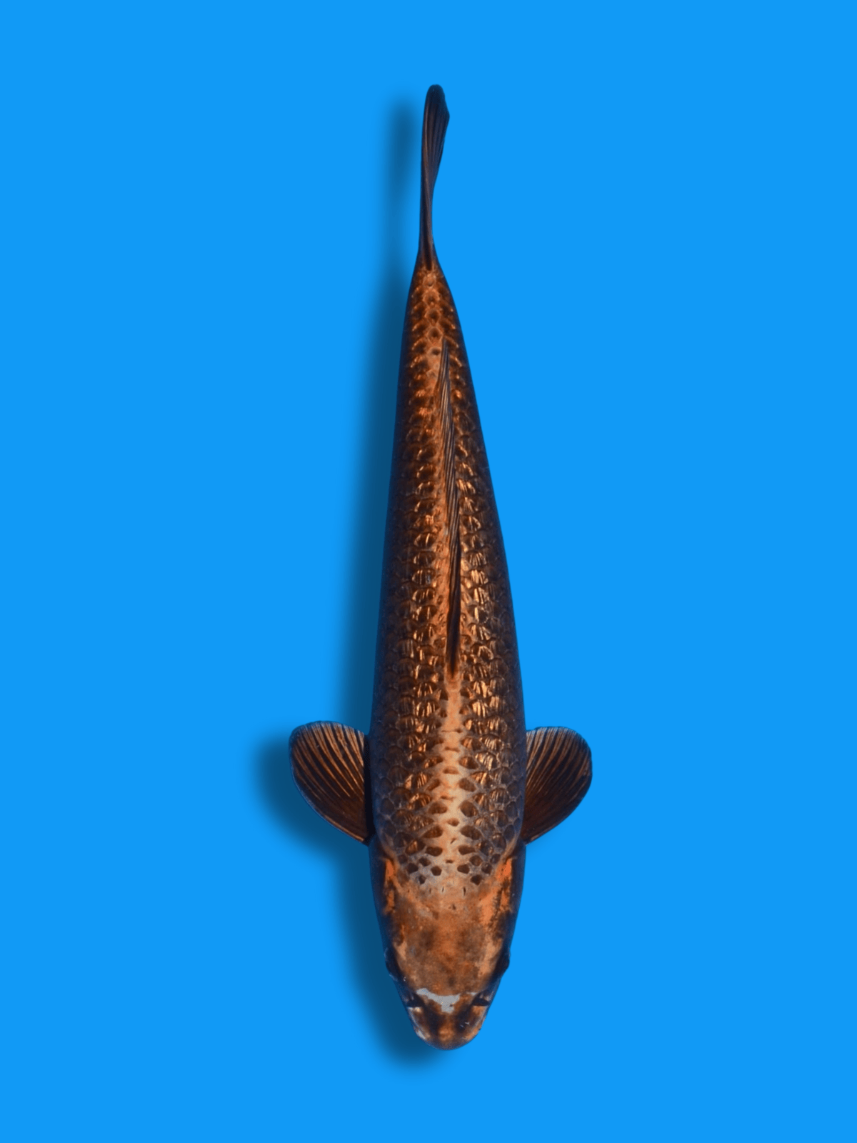 Dieser Ginrin Hikari Kawari ist ein einzigartiger Koi mit einer seltenen kupferfarbenen Grundfarbe und schimmernden Perlmuttschuppen. Die glitzernden Ginrin-Schuppen verleihen ihm einen außergewöhnlichen Glanz, der ihn zu einem echten Blickfang im Teich macht. Eine besondere Wahl für Koi-Liebhaber, die Wert auf seltene Farbvarianten legen.