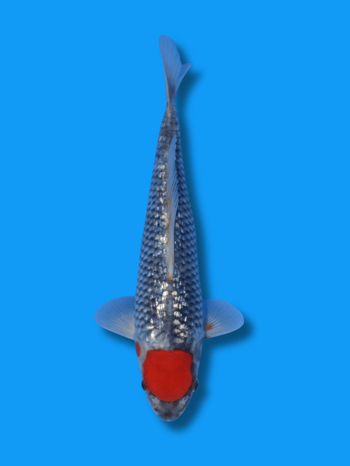 – Tategoi mit sehr schönem Ginrin. Seltene Varietät mit eindrucksvollem, weinrotem Tancho auf dunkelgrauem Körper.