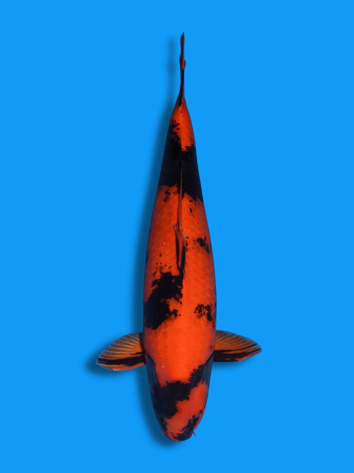 in Top-Qualität mit sehr schöner Sumi-Verteilung und tiefem, sauberem Rot. Breiter Körper mit viel Entwicklungspotenzial und gleichmäßig gefärbten Brustflossen, ca. 75-80 cm.