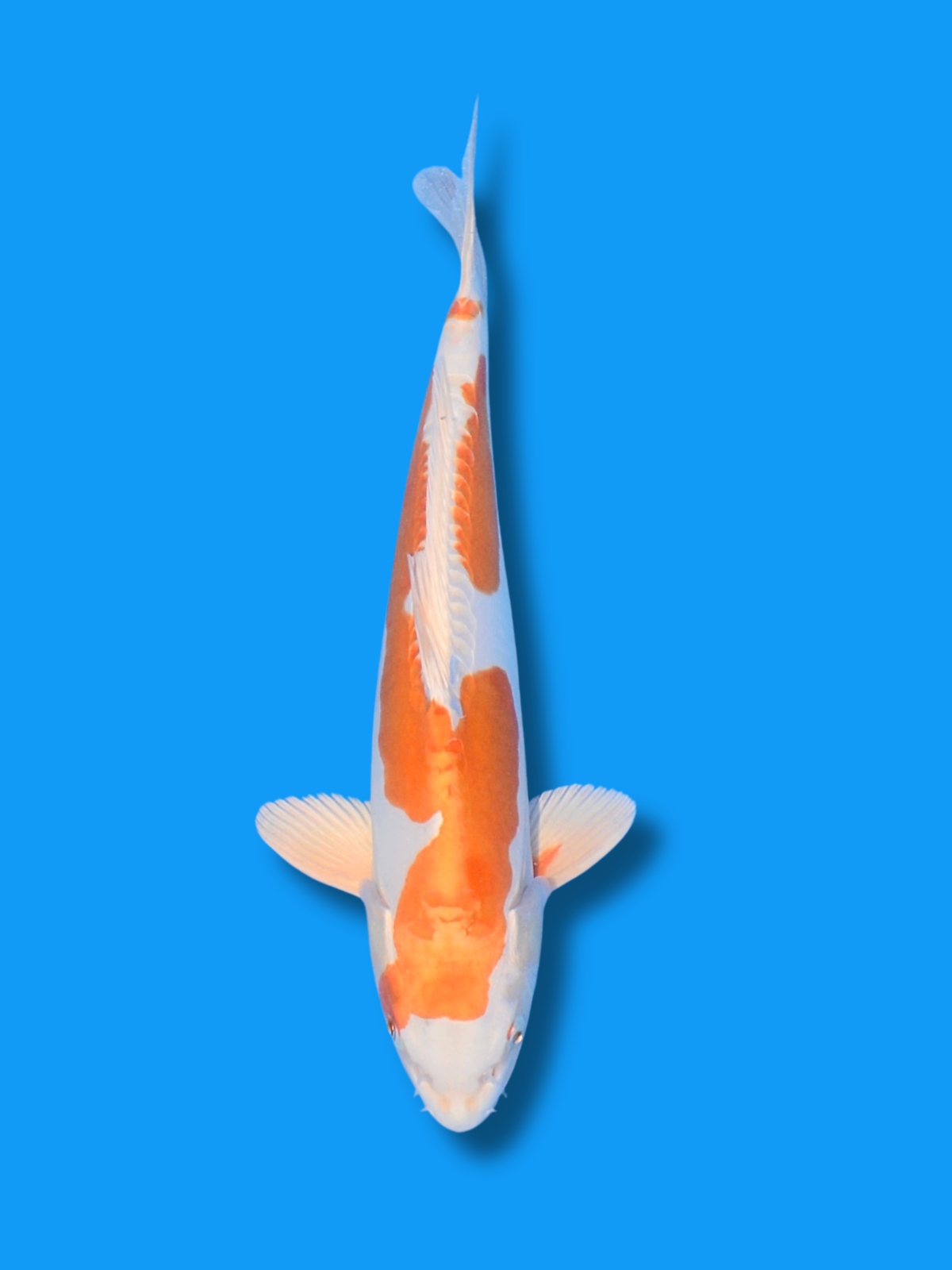 Dieser Tategoi Inazuma Doitsu Hariwake beeindruckt mit einer einzigartigen blitzartigen Zeichnung, die sofort ins Auge sticht. Die Kombination aus metallic Gelb-Gold auf metallic Schneeweiß macht diesen Koi zu einem außergewöhnlichen Exemplar. Seine sehr schöne Zeichnung und das besondere Zusammenspiel der Farben lassen auf eine vielversprechende Entwicklung schließen. Nicht einfach zu bekommen, ist dieser Koi ein echter Schatz mit super Zukunftspotenzial – ideal für anspruchsvolle Koi-Liebhaber, die auf Qualität setzen.