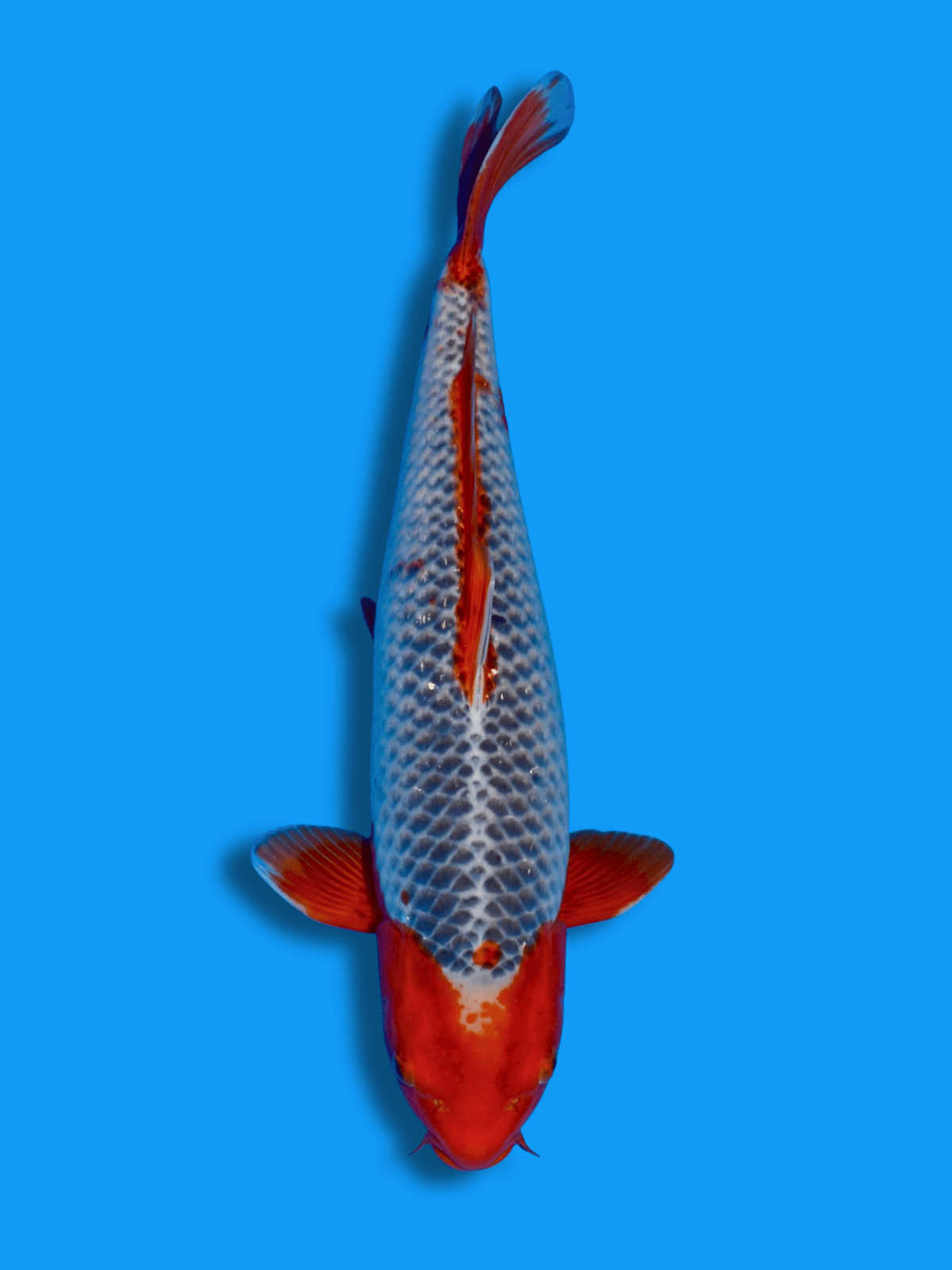 Ein wunderschönes Kado Gin Asagi-Weibchen mit glänzendem Perlmutt an den Schuppenrändern und einer roten Kopfzeichnung. Dieser beeindruckende Asagi überzeugt auch mit seinem tollen Körper und viel Potenzial für weiteres Wachstum. Eine ausgezeichnete Wahl für Koi-Liebhaber, die nach einem besonders schönen und vielversprechenden Fisch suchen.