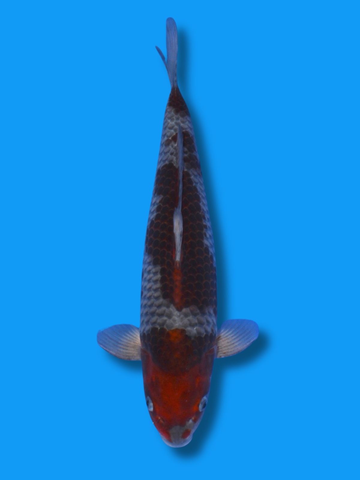 Ein außergewöhnliches und seltenes Kage Goshiki-Weibchen mit einer hervorragenden Zeichnung aus kräftigen Farben auf einem beeindruckenden Körperbau. Dieser Koi überzeugt durch sein großes Potenzial und ist eine gute Wahl für Liebhaber, die sehr hochwertige und seltene Exemplare suchen.