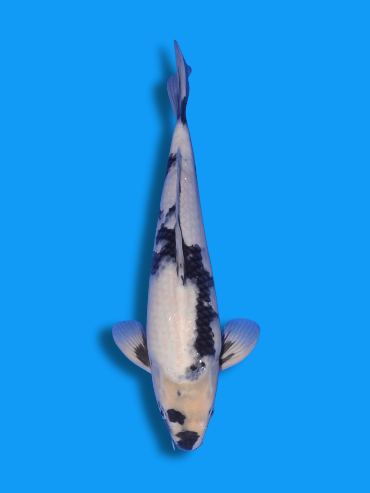 Dieser Shiro Utsuri Jumbo Tosai von Marusei zeigt eine kontrastreiche Schwarz‑Weiß‑Zeichnung und besitzt zusätzlich ein auffälliges Kuchibeni (Mundfleck), das ihn besonders interessant macht. Mit solidem Potenzial für Entwicklung und Wachstum eignet er sich für Koi‑Freunde, die einen Jungkoi mit gutem Preis-Leistungs-Verhältnis erwerben möchten und Freude daran haben, seine Entwicklung im eigenen Teich zu begleiten.
