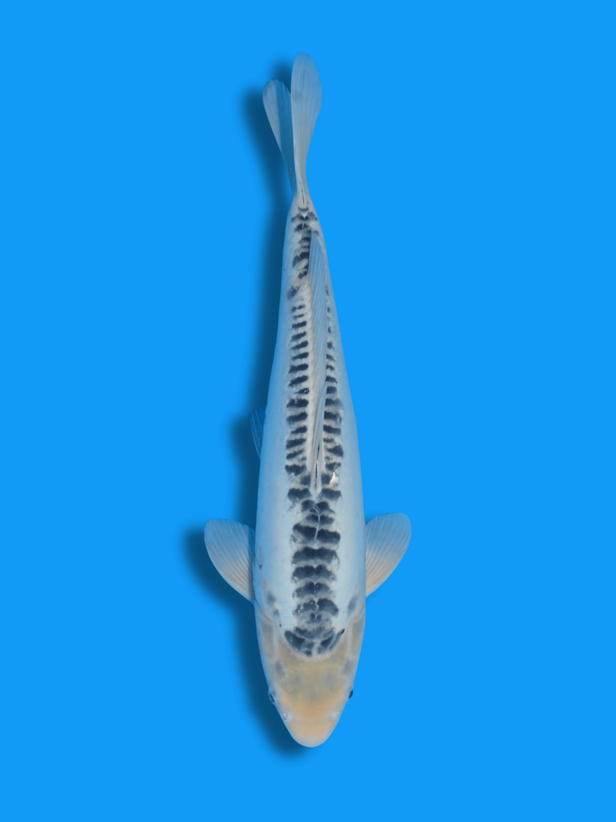Ein sehr schöner Shusui von der renommierten Marusei Koifarm. Dieser Koi besticht durch seinen hellen, sauberen Körper und die markante, sauber ausgeprägte Schuppenzeile entlang des Rückens, die typisch für hochwertige Shusui ist. Ein eleganter, harmonischer Koi, ideal für Liebhaber dieser Varietät.
